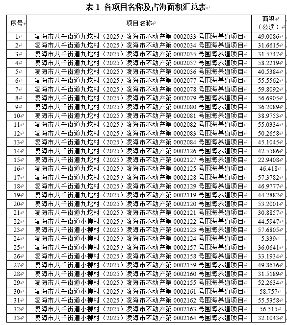 錦州信洋水產(chǎn)養(yǎng)殖有限公司委托,遼寧研海生態(tài)科技有限公司編制完成了錦州鹽場(chǎng)周邊海域33個(gè)圍海養(yǎng)殖項(xiàng)目環(huán)境影響報(bào)告書及公眾參與說明,項(xiàng)目列表見表1。根據(jù)《環(huán)境影響評(píng)價(jià)公眾參與辦法》(生態(tài)環(huán)境部令 4號(hào))要求,現(xiàn)對(duì)環(huán)評(píng)報(bào)告書全本及公眾參與說明進(jìn)行報(bào)批前公開。
